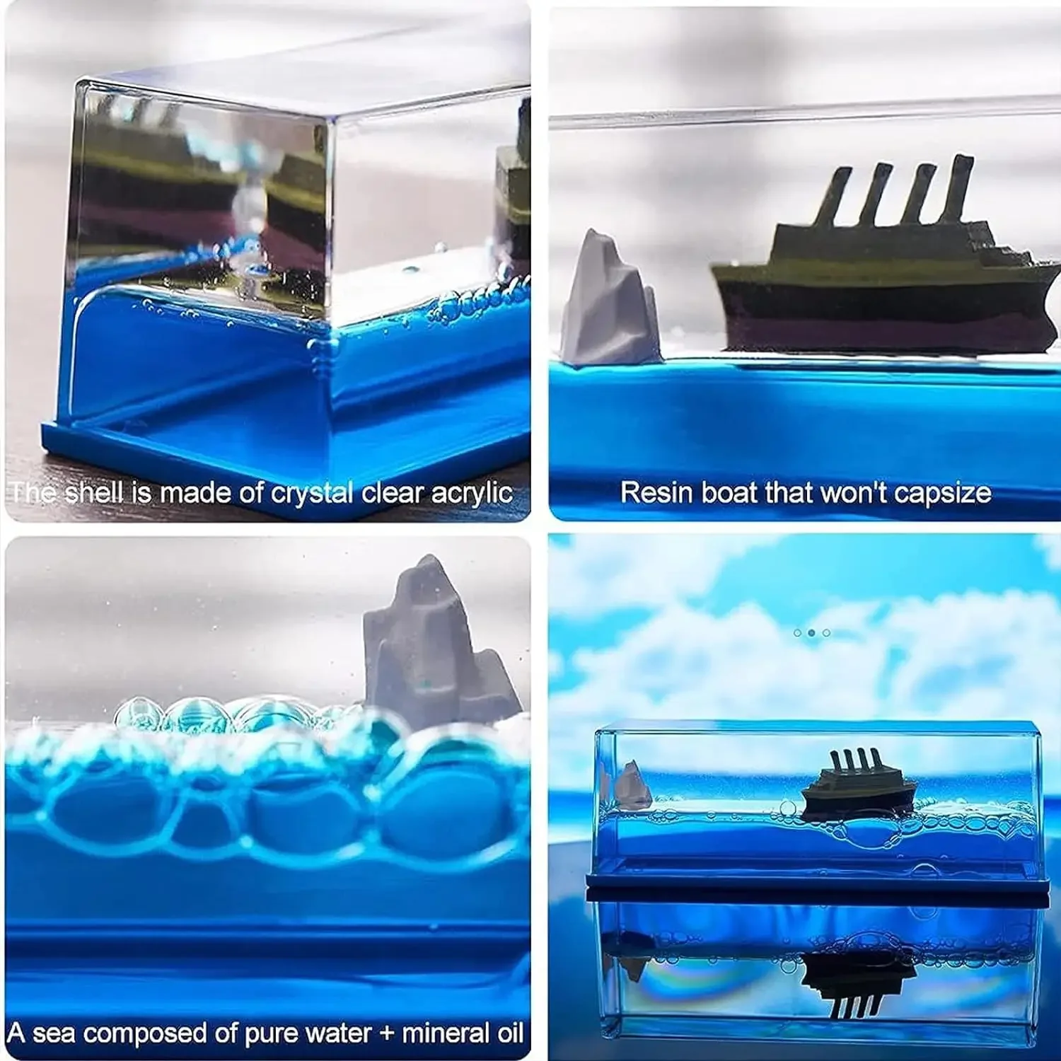 ❥❥【Cruise Ship Fluid Drift Bottle】This unsinkable ship decoration symbolizes courage, when you shake this fluid drift bottle, there is a surging sea, cruise ships and icebergs float with the water, as if they are about to capsize, and eventually they will float on the water.